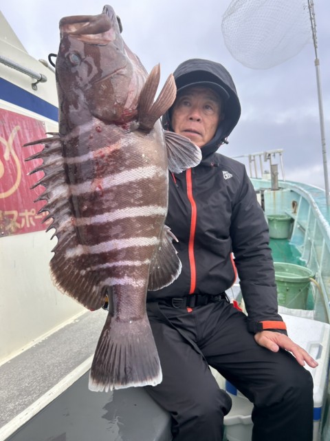 外道でマハタ、カサゴ混じる。水温14.5度。濁り。