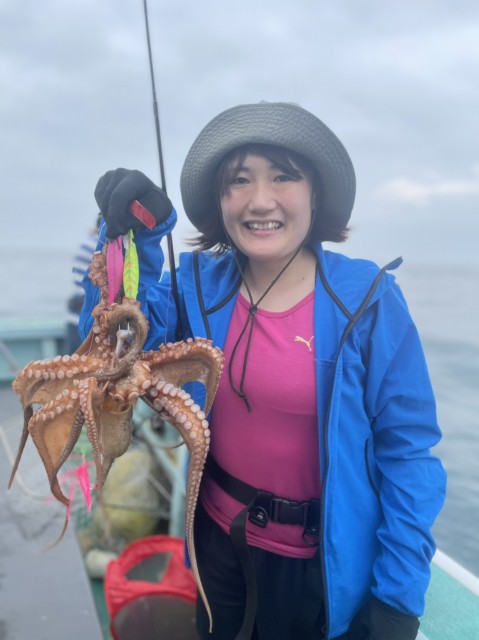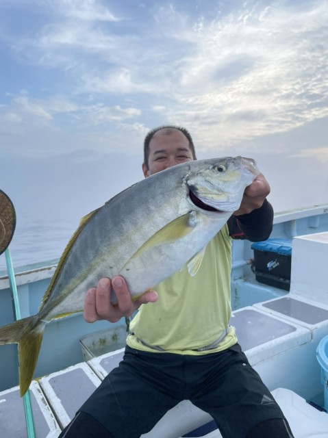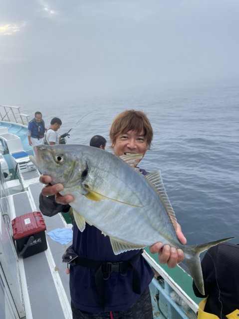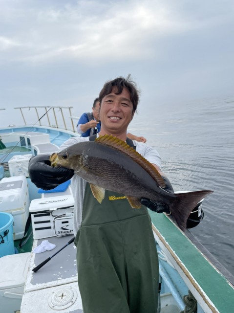 朝一から中鯛も釣れ、アタリ多く終日、順調に釣れ外道でイナダ、マハタ、ふぐが混じりました。水温20.5度。薄濁り。