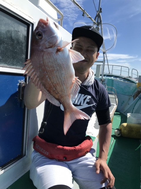 日中、放流サイズ多かったが、アタリは多く、徐々にキープサイズ多くなり、テンヤ、タイラバ共に好調に釣れました。外道でヒラメが混じりました。水温23.0度。薄濁り。