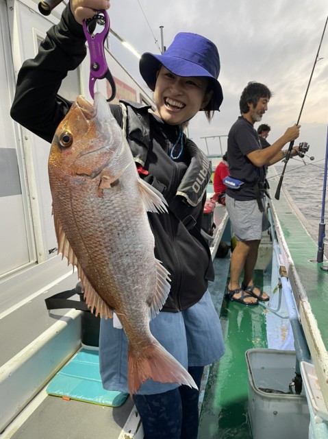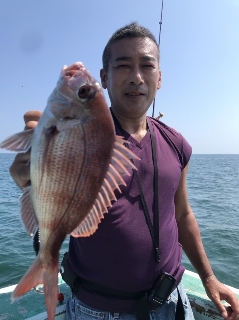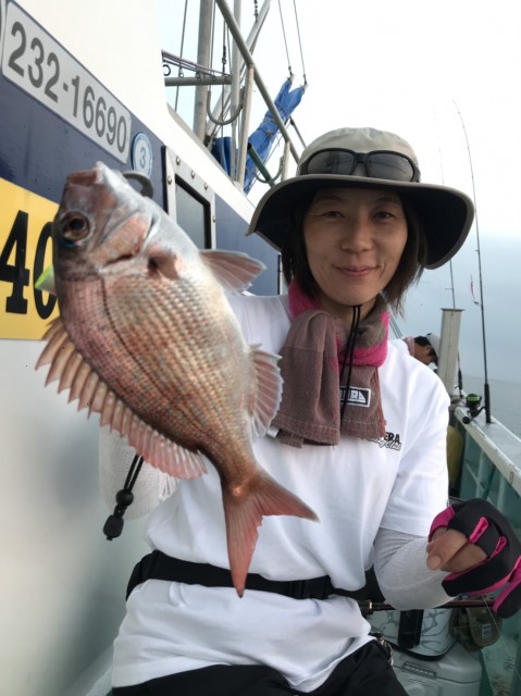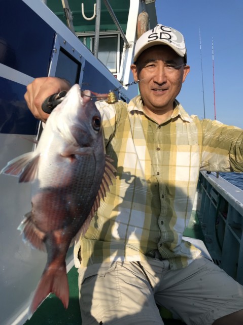 朝一、中鯛GET。日中もポイント移動しながらアタリ多く、型がありました。水温26.0度。薄濁り。