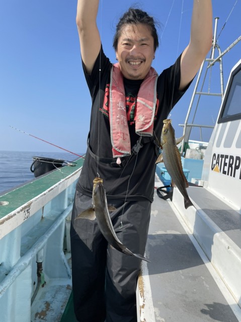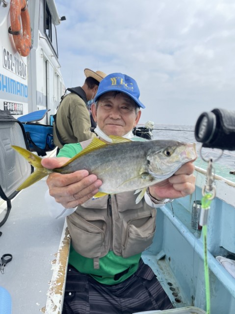 終日、シマアジの反応あり、バラシもありましたが、良型(2.64kg2.14kg2.13kg1.86kg1.77kg1.52kg)GETできました。イサキは短時間で入れ食いで絶好調に釣れました。水温25.5度。濁り。
