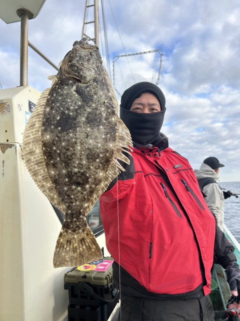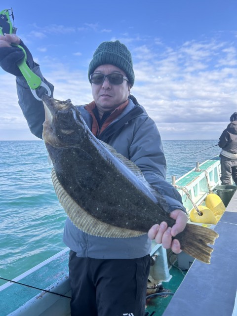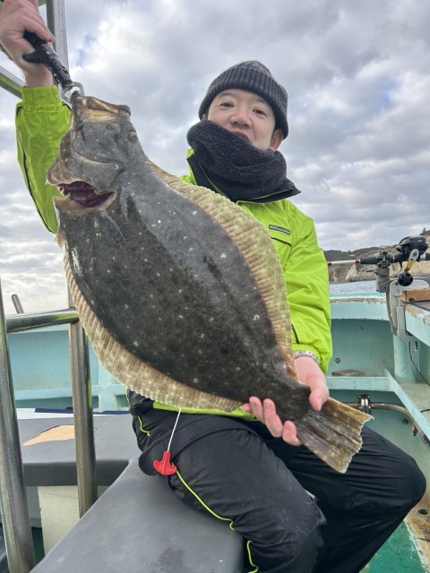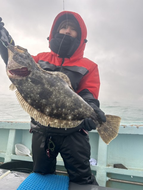 前半、雪や風で釣り辛かったが、昨日よりもアタリあり、大鮃(4.18kg3.1kg)や良型(2.8kg2.6kgも混じりました。水温14.0度。薄濁り。