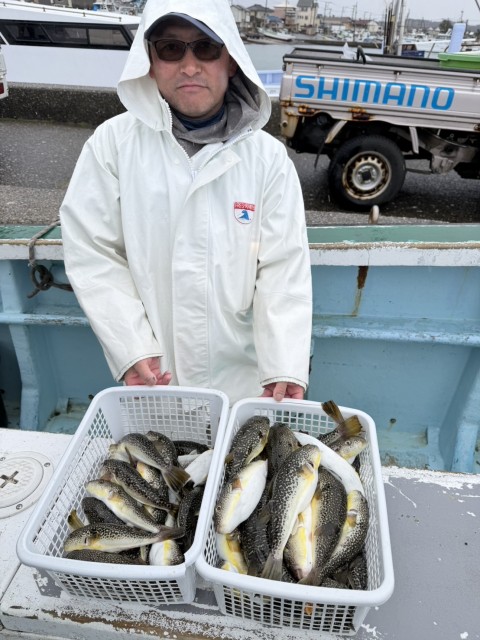 後半、反応に当たり、ショウサイフグが好調に釣れました。水深も浅いので手返し良く数が伸びました。水温14.5度。