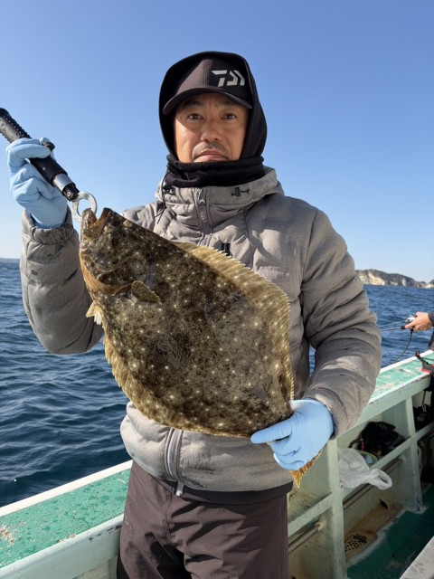 流れが悪く、ポイント移動しながらイワシの反応もあり、大鮃(5.3kg4.26kg2.95kg2.8kg)も混じりました。水温15.0度。濁り。