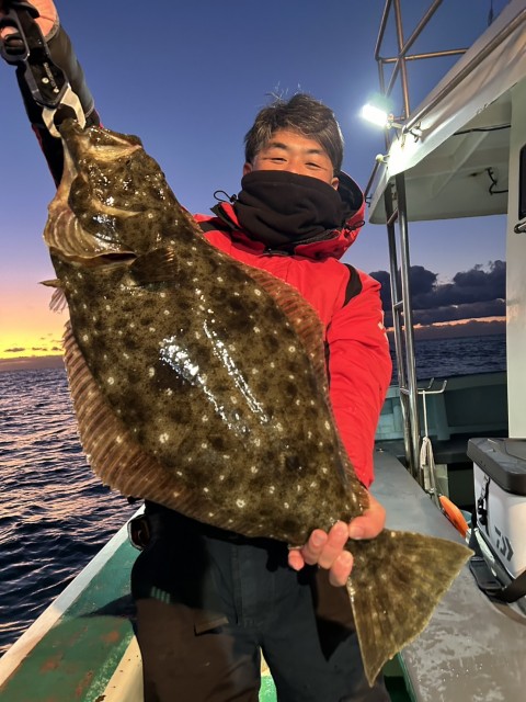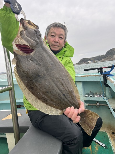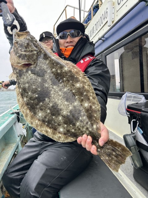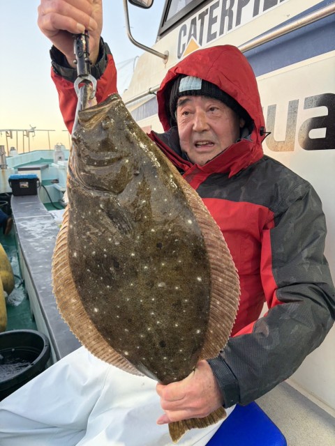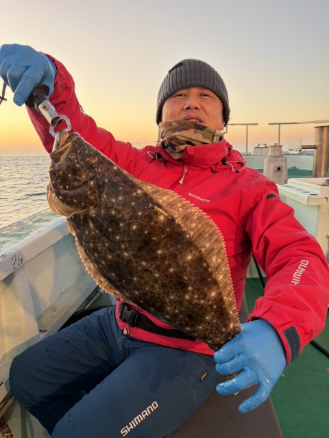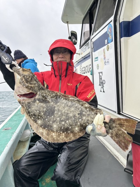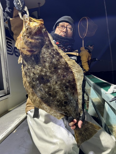 今日も朝一から大鮃も混じり、2kgオーバーの良型揃いで全員釣れました。水温15.5度。薄濁り。