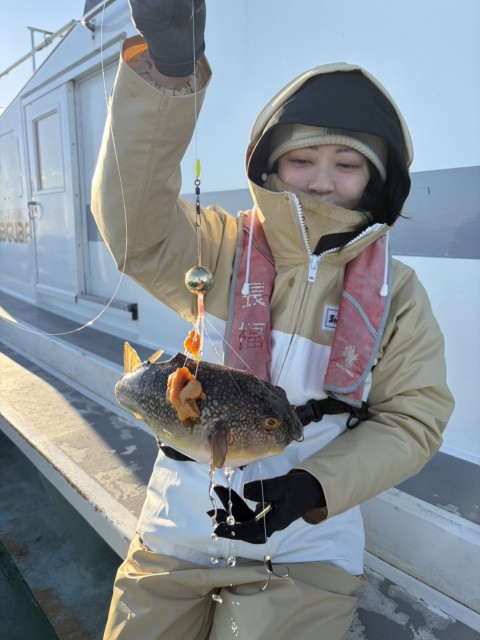 コモンフグ主体に前半は型があったが後半は当たりが減り数伸びず。水温15.2度。濁り。