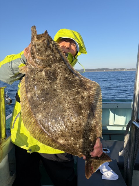 次第に流れが止まってしまい、アタリが単発でしたが、大鮃(5.9kg5.5kg3.8kg3.7kg)も混じり、良型主体で釣れました。水温13.7度。すみ気味。
