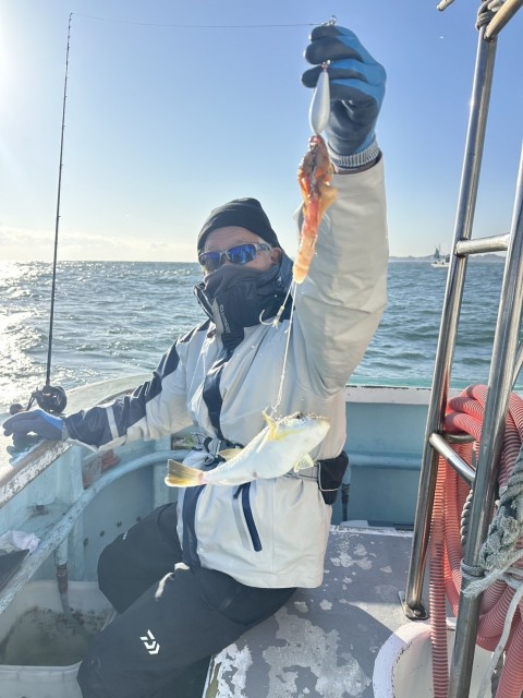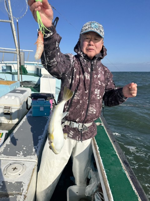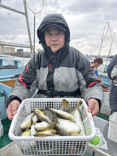 外道でふぐ、カサゴ、ウマヅラハギ混じる。水温14.5度。薄濁り。
