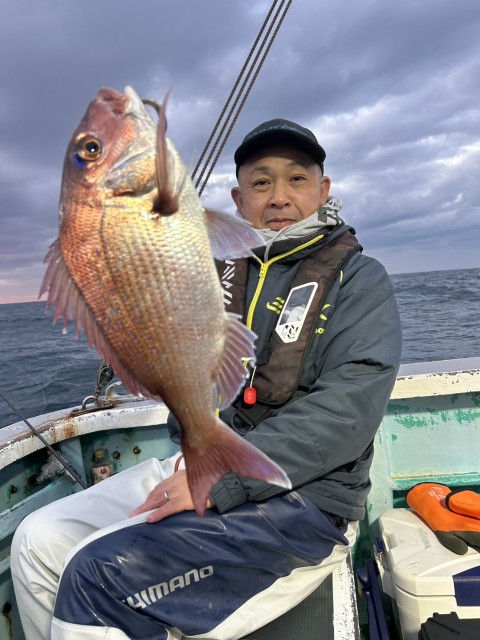 朝一から順調に型があり1キロサイズや中鯛も混じりました。外道でマハタ、カサゴ、イサキ、カンダイ、ウマ混じる。水温15.5度。薄濁り。