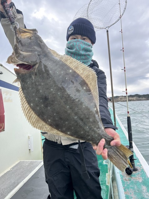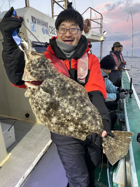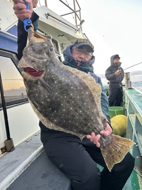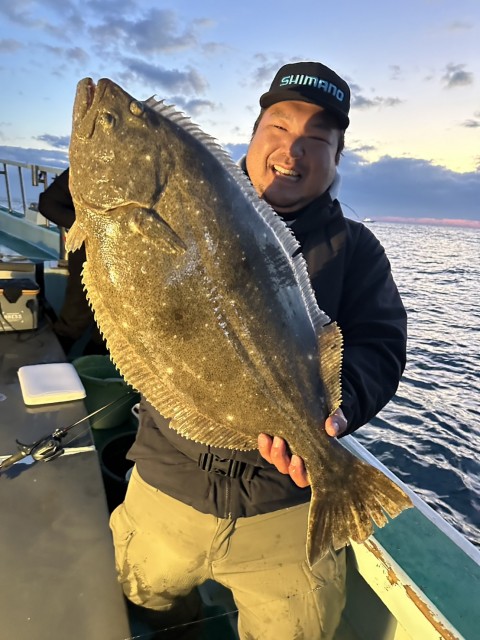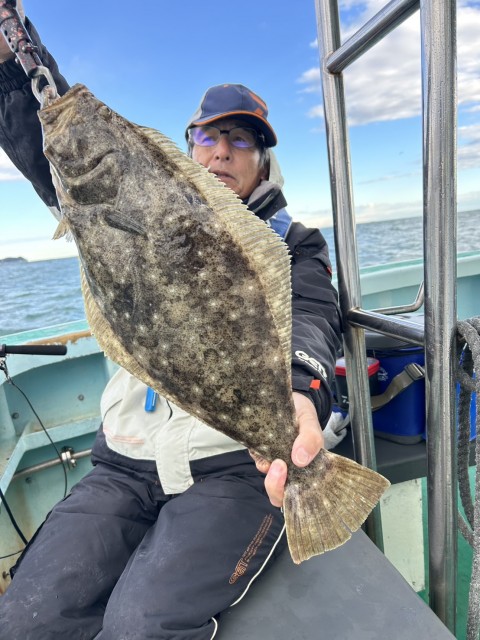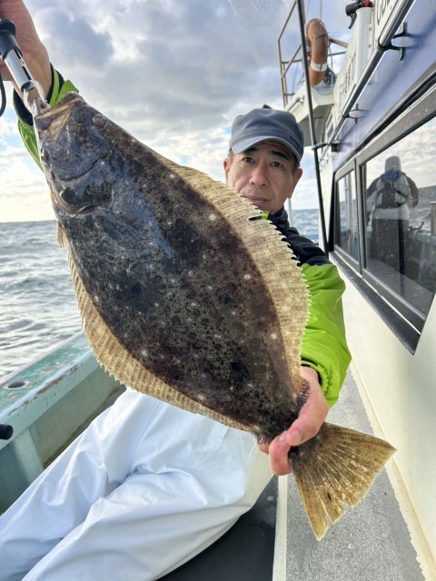 濁り強くウネリもあり前半アタリ少なかったが、日中になりイワシの反応もありアタリ増え、大鮃3枚混じりました。水温16.0度。濁り。