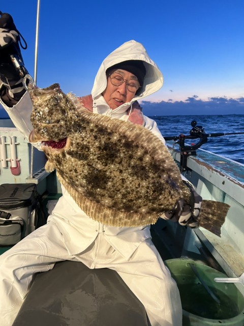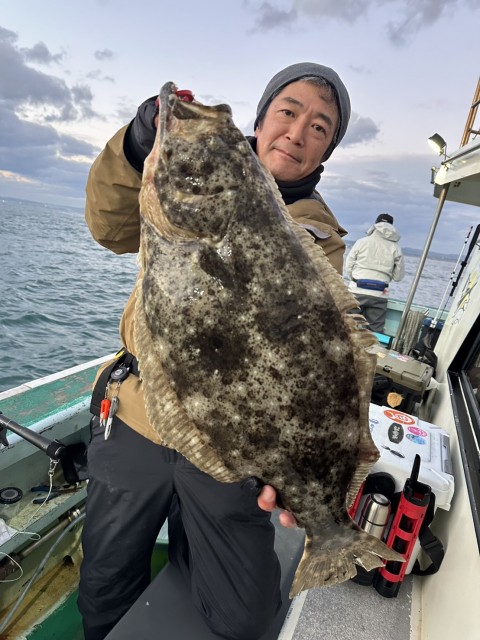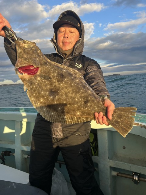 良型主体で流す度に型があり、順調に釣れ大鮃(3.1kg3.0kg)も混じりました。水温14.3度。澄み気味。